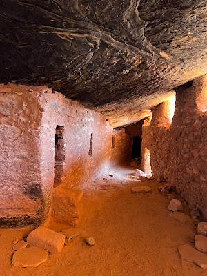 Ma January 12, 2025At the start of our long road trip out to CA, the weather was auspicious, so we headed through Bears Ears National Monument to find the thousand-year-old Moon House cliff dwelling ruins. I had called the ranger ahead of time to get the permit (not in high demand in Feb!), and knew the roads would be in good condition if we got there before the incoming storm did. We lucked into a gorgeous day and the scenery on the way in from the east was specacular.