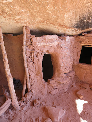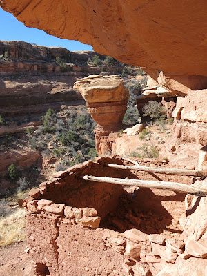 There were neat views out to the canyon from the hallway. Note the visible hand marks in the mud on the little pillar. Thousand-year-old handprints, those are.