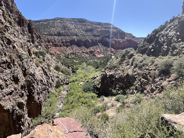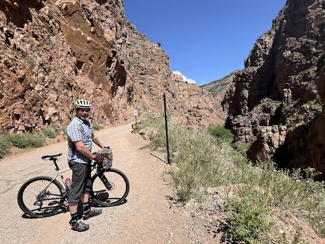 Ma May 27, 2025 #adventure #bikeThey finally reopened the dirt road going through the Gilman Tunnels up in the Jemez mountains after a large rock management safety project. I've been waiting for this, as I've been wanting to ride it since I found it on a map, around the time it was closed. I didn't get a picture of the very picturesque tunnels as I was enjoying the pleasant dirt road climb so much, but here is what the terrain in the canyon above looks like. We rounded out the ride by climbing all the way up to where the dirt road ends on 126 and then around to 4 for a long descent to end the 40-ish mile loop. It was a lovely day, despite maybe not quite being in shape for that long a ride...