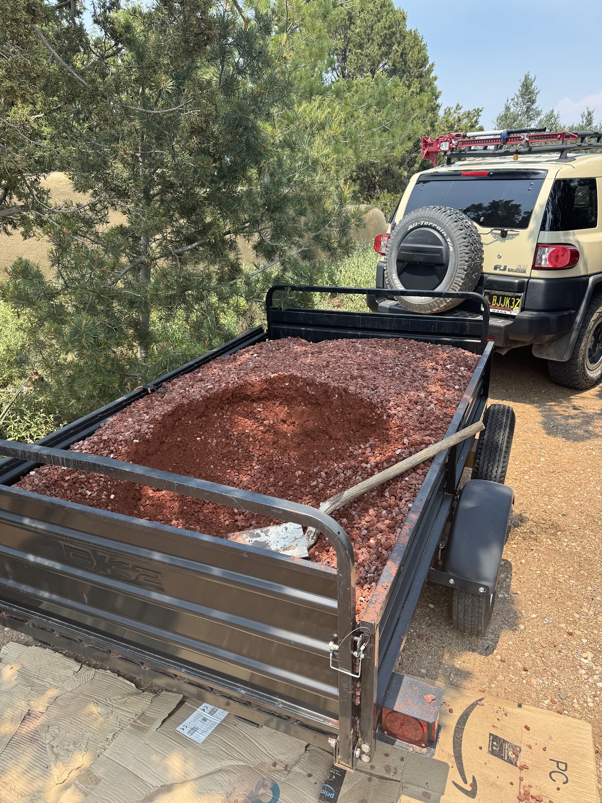 One of many loads of pumice. I couldn't get the truck much closer than about 50 ft from where the rock needed to go, so I shoveled it out into the wheelbarrow, which Anna then took in to the project and dumped. Repeat ad nauseam. Oh, it was hot too!