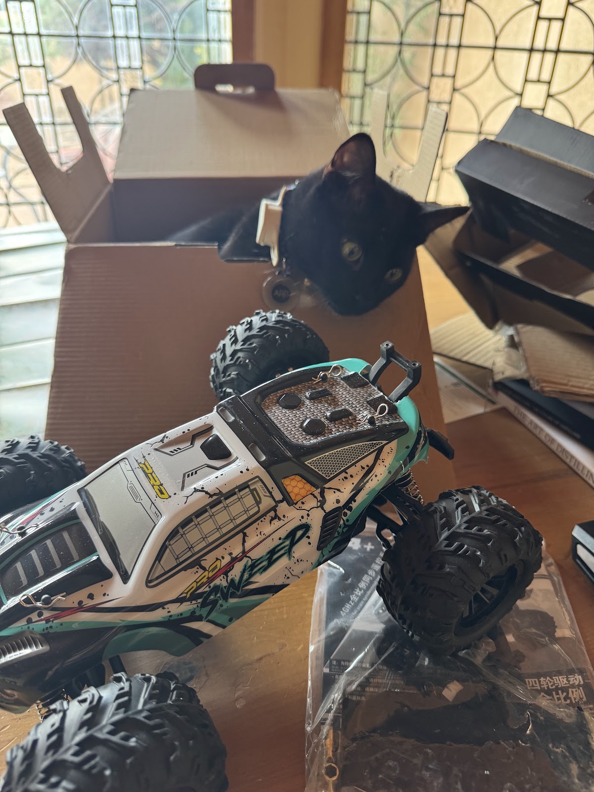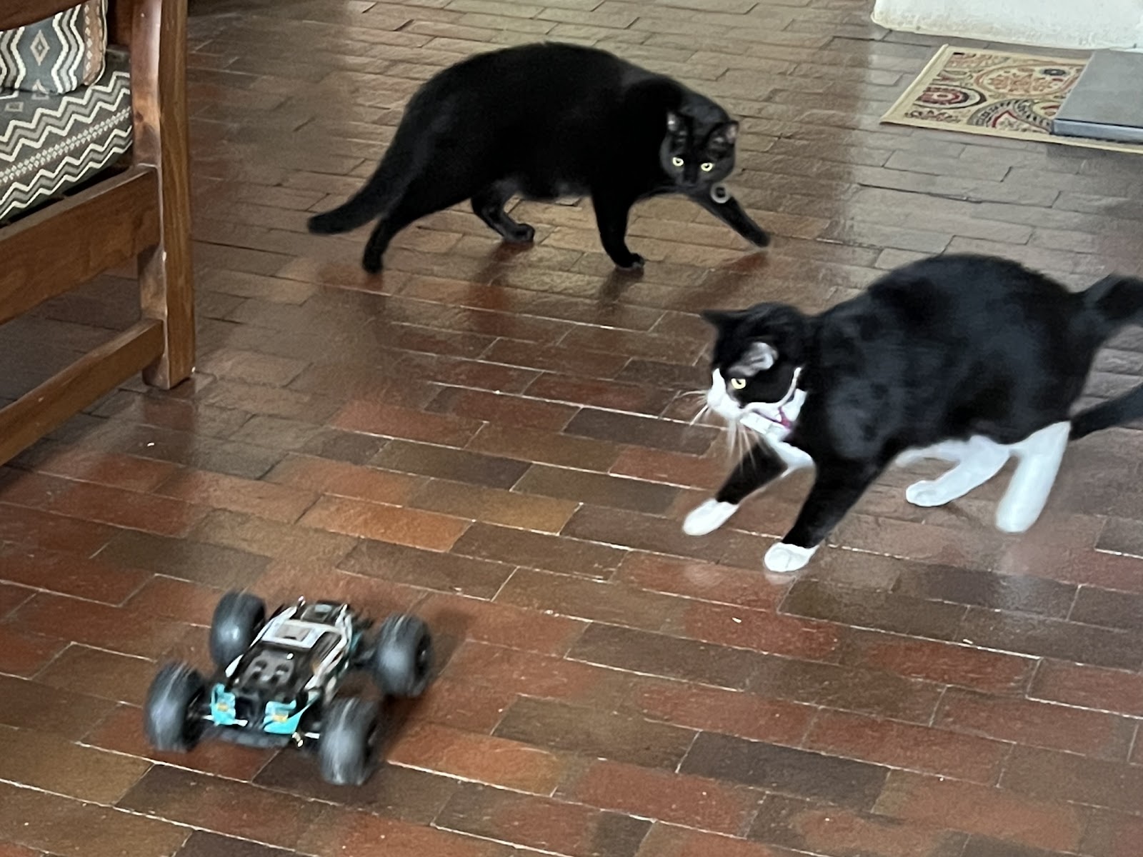 BikeBoy July 31, 2025Kean got me a fun toy for my birthday, an electric radio-controlled car. It zips around and is very entertaining. The cats really do not know what to make of it though!