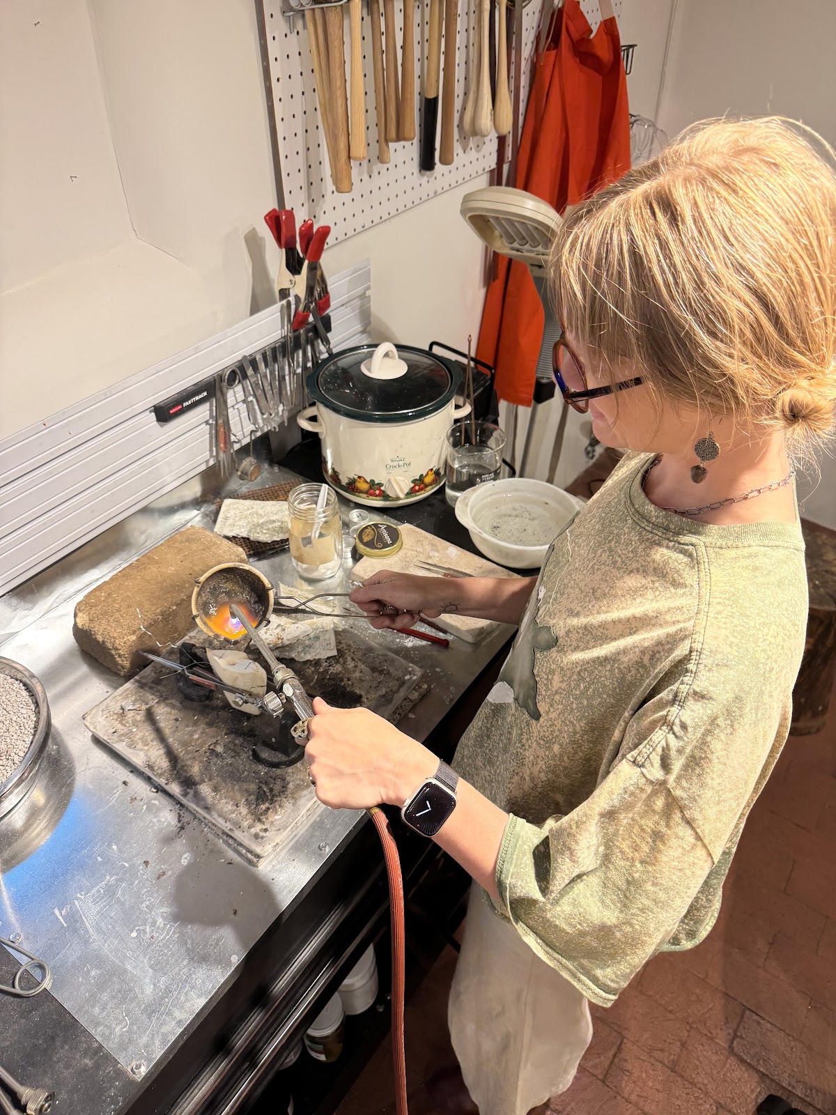 BikeBoy August 16, 2025Anna and I did a jewelry-making workshop with our friend Emily (proprietor of Sun and Dust gallery, and an amazing artist herself; she started offering classes this year as Acequia Jewelry Workshop and Anna has done several of them. I got to go with her to this one, as a planned visit from a friend didn't pan out and she already had made a reservation for two. Lucky me!
