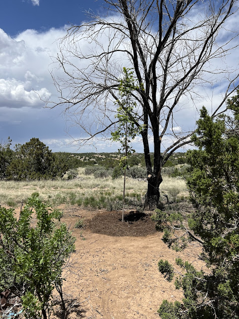 We also planted a bur oak to replace the dead elm. This will be a really nice tree...in thirty years... I couldn't resist it, as this tree should do well in this area and apparently has really large, no-so-tannic acorns.