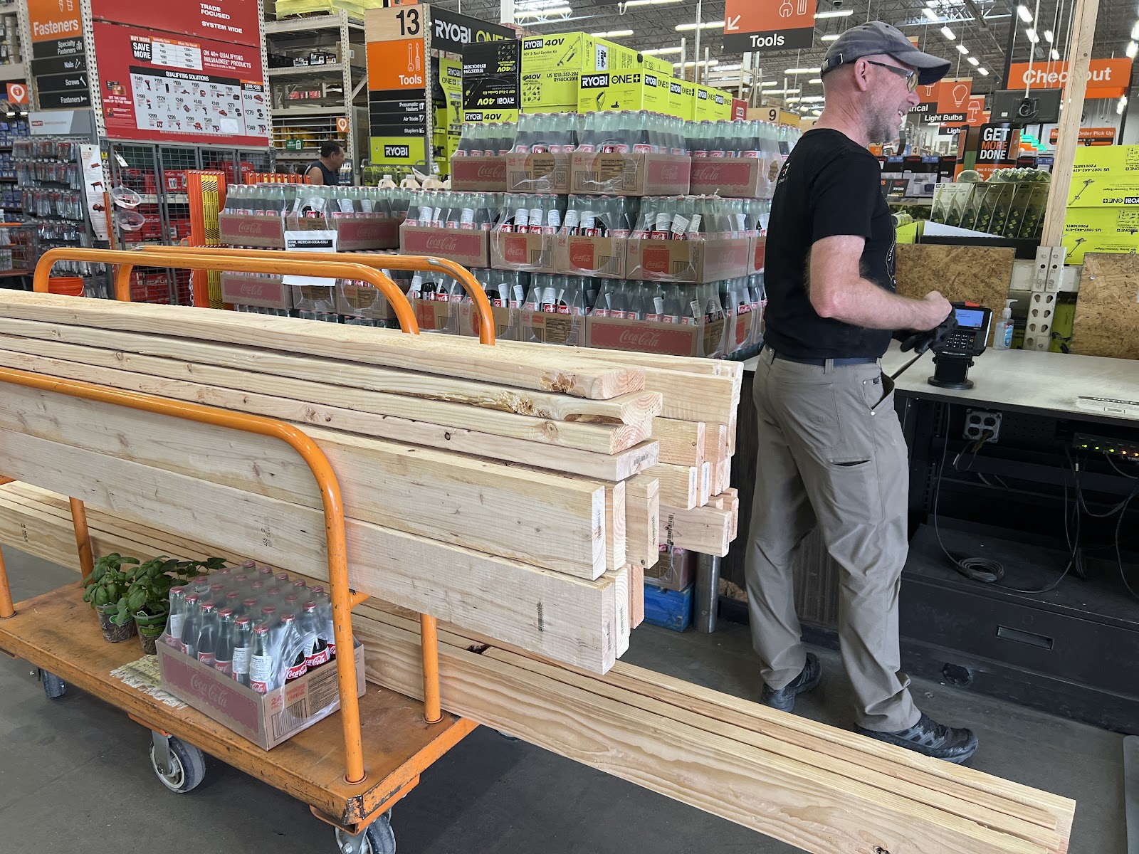 BikeBoy August 26, 2025 #saloonWe never seem to have quite enough lumber; every time I think we've got what we'll need to see the project through, I'm proven wrong. So, off to Home Depot (again) for another bunch of sticks. Mexican Coke was on sale, and Anna needed some basil...