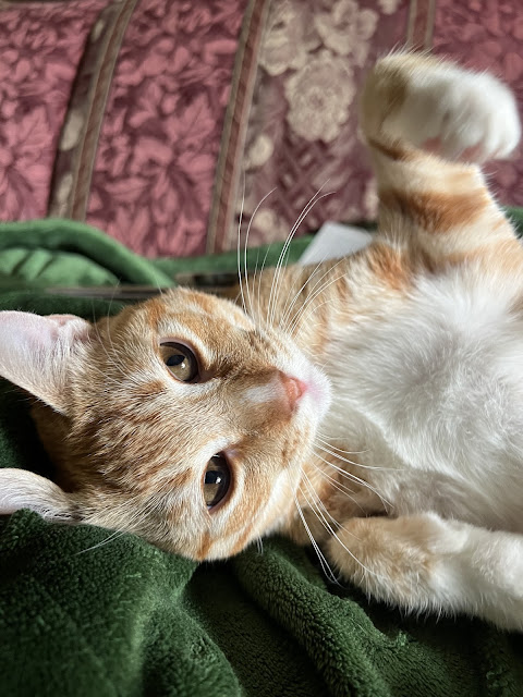 And last but not least, Kean's kitten Fly (short for Flyaway since he was found at the airport) is just ridiculously cute. He took a couple of days to figure out that Chad and I weren't scary, and then brought out his big purr.