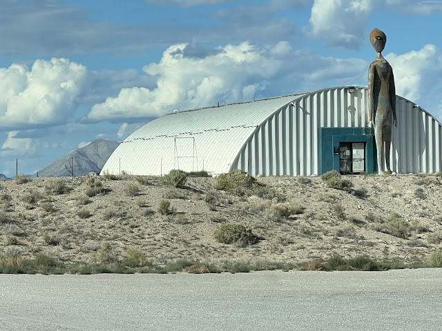Can't avoid the alien kitsch in Nevada Ma September 20, 2025 Whatever route you take, it is there. Of course, this time we drove right by Area 51. ‹ Bristlecone Forest Downieville ›