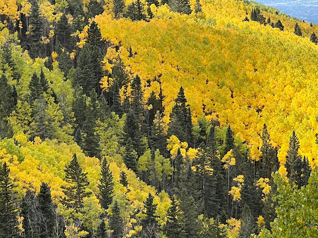 Ma September 30, 2025We’ve been watching the mountain above town progressively turn yellow all week, so went up to hike the appropriately-named Aspen Vista trail today. It didn’t disappoint!