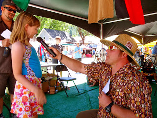 The rest of the afternoon brings a tug-of-war and foot races down Main Street. Nimue entered the 8-year-old race, came in third (of three) and was frustrated, only calming down after I grudgingly ran in the over-30 women's race. I'm not a sprinter, but managed to strategically place myself in third, just like Nimue, which cheered her up immensely. (Good thing she didn't come in second; I let myself get boxed in, and probably couldn't have placed myself in that spot!)