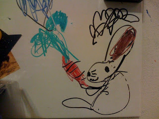 Nimue drew this up on her whiteboard yesterday. She was complaining about not being able to draw as precisely as some of her school friends, but I told her that many real artists aren't so concerned about how perfect the lines are... She is very proud to identify herself as an artist!