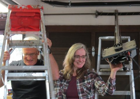 I did take a weekend to abandon Happy Kid and Chad, to go visit my parents. It was a good visit, and of course involved more projects, the biggest of which was helping my dad install a new garage door opener. It was a highly amusing process, a hint of which you can see below.