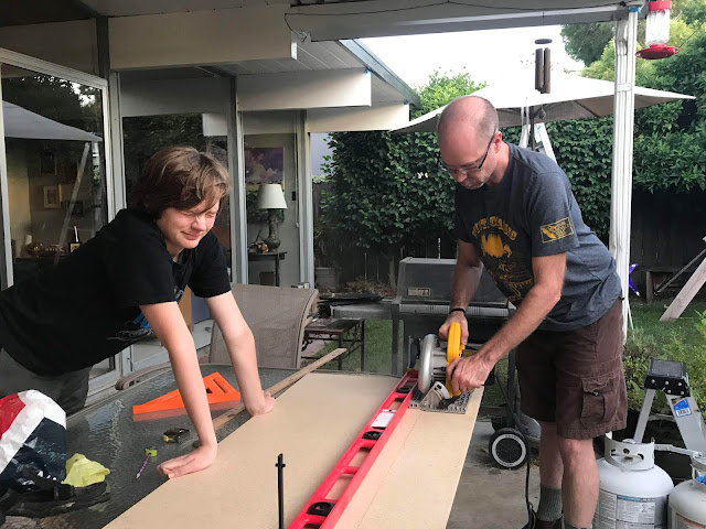 Happy Kid also plans art projects requiring a large piece of wood, buys said wood, and sweet-talks Dad into helping cut it down to the desired size.