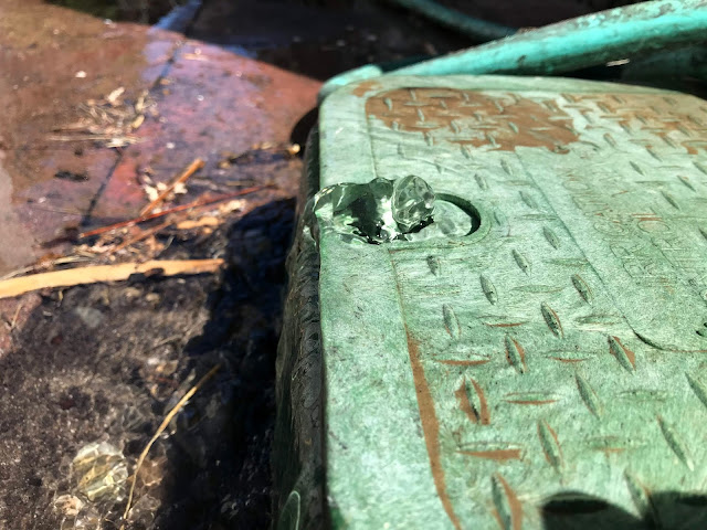 Hmmm....it hadn't rained in MONTHS...this shouldn't be wet. On closer examination, it was clear that water was burbling up out of the box that contained all of the partially-buried sprinkler valve.