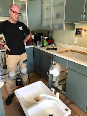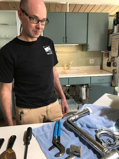 For the record, this was Not Our Fault. Chad had done everything right to complete the impressive feat of replacing the kitchen sink on the first shot. We just didn't count on getting a defective part.