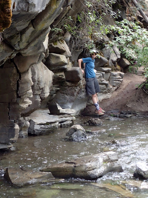 The kid, who oddly didn't want to go in the water despite it being about 90 out. We had to settle for going in ourselves and laughing at the other feral children who were chasing each other around with sticks and bunches of wet algae-covered vegetation.
