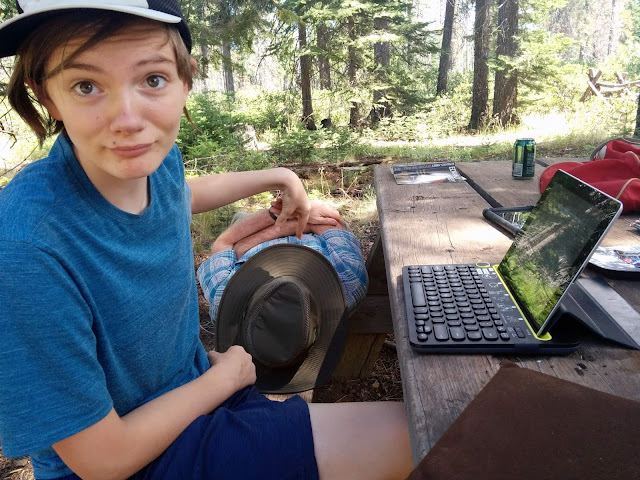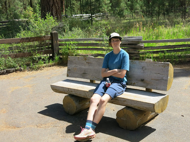 Post hike, we took advantage of the shady picnic table to have some lunch. Nim worked on her writing; Chad took a nap to prepare for the drive back along another obscure almost-not-a-road through a part of the Crooked River National Grassland. (I just looked at the atlas to plot out said dubious route!)