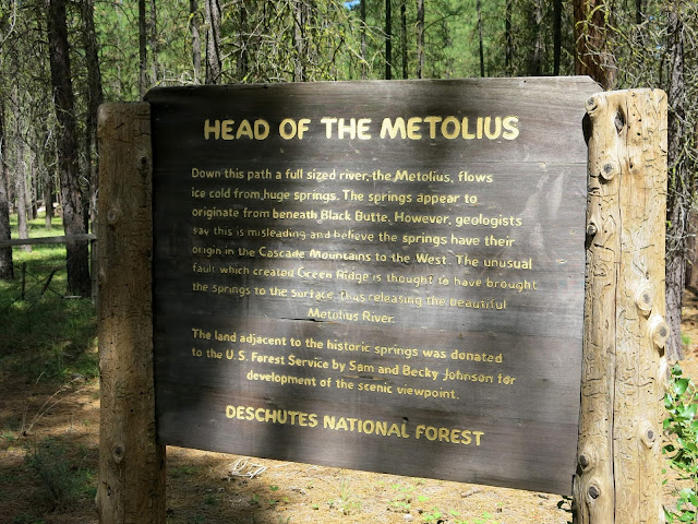 The springs are surprisingly serene and quiet, for all that the flow is something like 50,000 gallons a minute. Mt. Jefferson is framed nicely in the background. From this point, the Metolius River flows back to the lake by our campground.