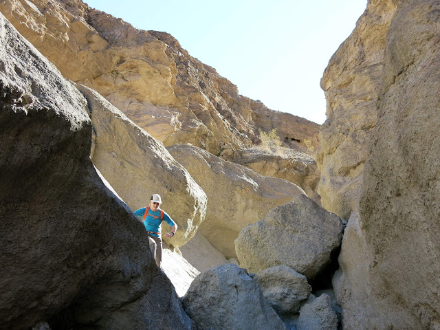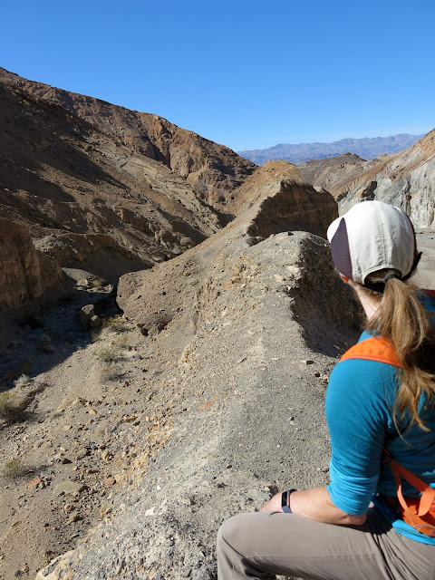 A jolly, but quite do-able downclimb was needed to drop into Mosaic Canyon. The hikers below seemed to think we were a bit weird...