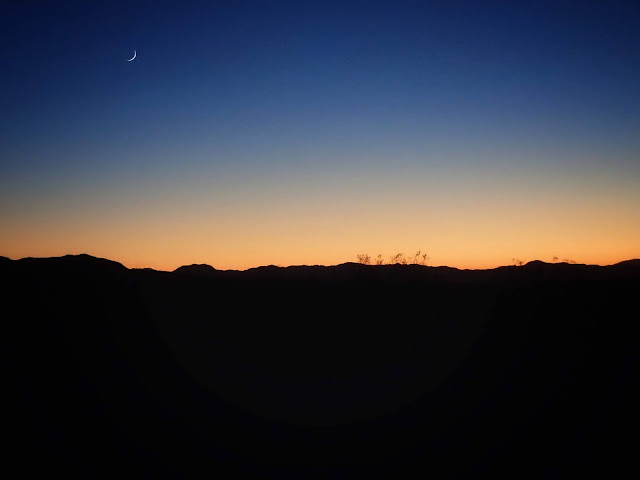 The sunset was gentle, and the color palette of the dunes constantly shifted until the light disappeared entirely and the thinnest of crescent moons came up.