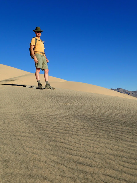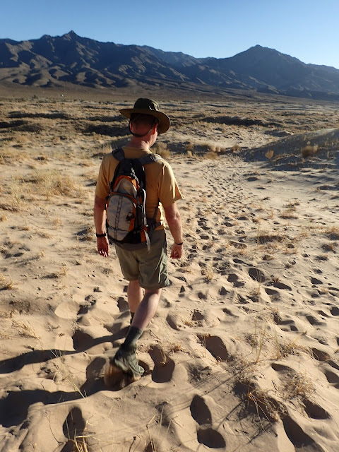 On the way back down. Chad noticed that his shoes seemed oddly full. His boots, while highly breathable, also let in a lot of sand. The amount of sand he poured out when we were done was seemingly more than the volume of his foot. After dumping them out, he tucked the boots carefully under the van.