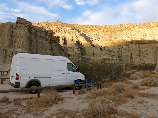 After getting over the pass, I cast about for a place to stay. Since we hadn't planned on coming this direction at all, scanning the road atlas for campgrounds seemed to be the thing to do. I settled on Red Rock Canyon State Park, as it was vaguely in the right direction, we could get there before dark (barely), and their website indicated that they were open for first-come, first served camping. I figured they wouldn't be full, even though it was Friday night, because it was November and a stong cold front was coming in.