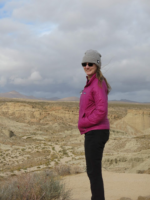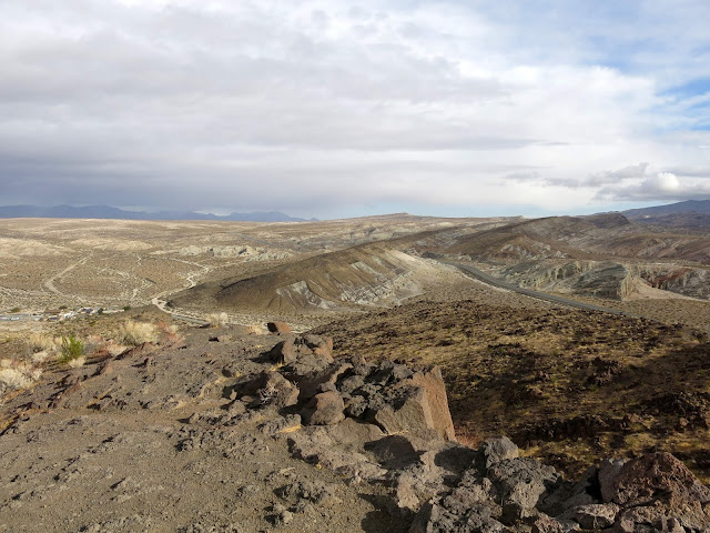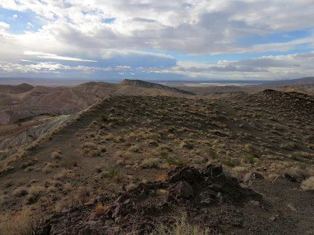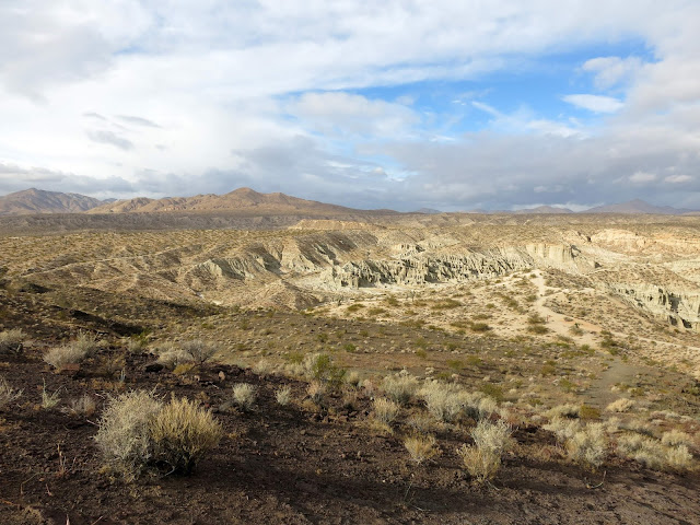 The general plan was to head to Death Valley and see where that took us, hiking and mountain biking along the way. Originally, we had thought to drive through Yosemite and do some hiking there, and then head down 395, but as the trip grew closer, it became clear that the first big storm of the season was going to hit the day we left, bringing snow to the Sierras. They closed Tioga Pass preemptively, so that route wasn't going to work. A closer examination of the forecast indicated that it would be cold enough to snow even over Tehachapi that night, and while that wouldn't be enough to close it, we didn't want to be dealing with chains and snow early in the trip before getting used to the new-to-us vehicle. So, we just got up early and drove fast to outrun the storm. No random stops for recreation on that day!