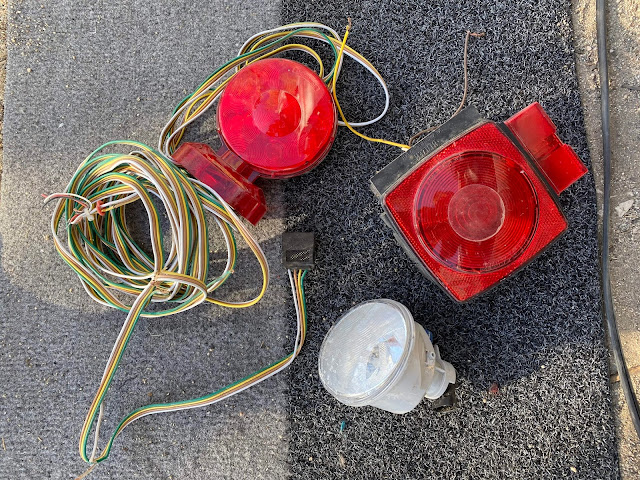 There were some bumps and soft spots in the road going down. Chad rides downhill faster than me, but every now and again I'd catch up to him. He kept stopping to pick up "treasures" -- lights that clearly had fallen off of people's trucks as they drove up this way previously. So now we have treasures.
