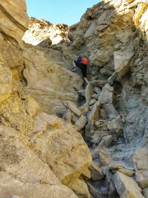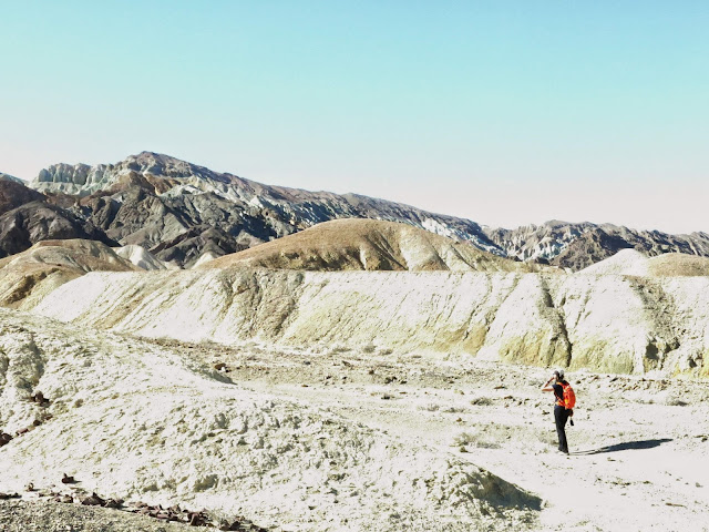 This day's destination was the short drainage of Twenty Mule Team Canyon. Why the funny name? Historically, large teams of twenty mules were used to haul each wagon full of borax from the mines in Death Valley. The rocks in this canyon are chock full of borate minerals, so they named it for the mule teams, even though said mule teams were never used in this particular canyon. By the time it was prospected, most of the borax mining activity had moved to deposits to the southwest of Death Valley, near the town of Boron.