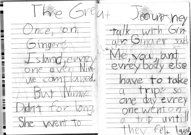 Once, on Ginger's Island, evreyone even Nimue complaned. But Nimue Didn't for long, She went to talk to Ginger. Ginger said "Me, you, and evreybody else have to take a trip." so one day evreyone went on a trip until they felt land.