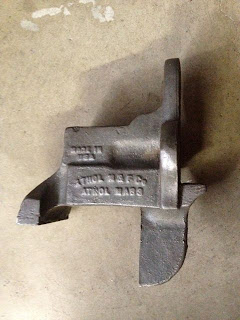 Having poor luck in the online quest, I put the word out to my in-laws in rural Washington, who are not unlikely to come across something like this. I soon received word that a likely-seeming object was found lurking under a workbench in their garage. As soon as a more complete description was sent, I started to get my hopes up - as the name on the side of the grungy old vise was "Athol" and that was music to my ears!