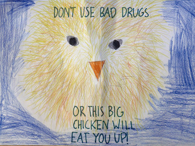 Nimue was quite proud of the fact that her class voted her poster from Drug-Free Week to be the best. We just got it back after its sojourn on the school office wall.