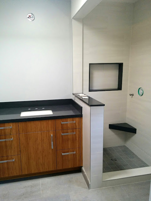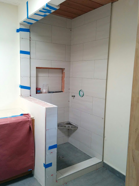 Now, we might get the plumbing and toilet finished in the next day or two and maybe the remaining electrical, but then have to wait for the shower glass people -- they don't have an opening to come make the measurements until next week, and then will need some amount of time to cut the glass before they can install it. Patience is a virtue, right...