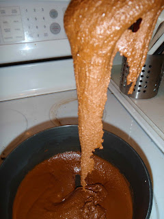 The resulting substance is interesting. Sort of nutty, sort of chocolatey, with a lot of underlying flavor complexity. It's gooey at just over room temperature, but completely solid at refrigerator temperature.