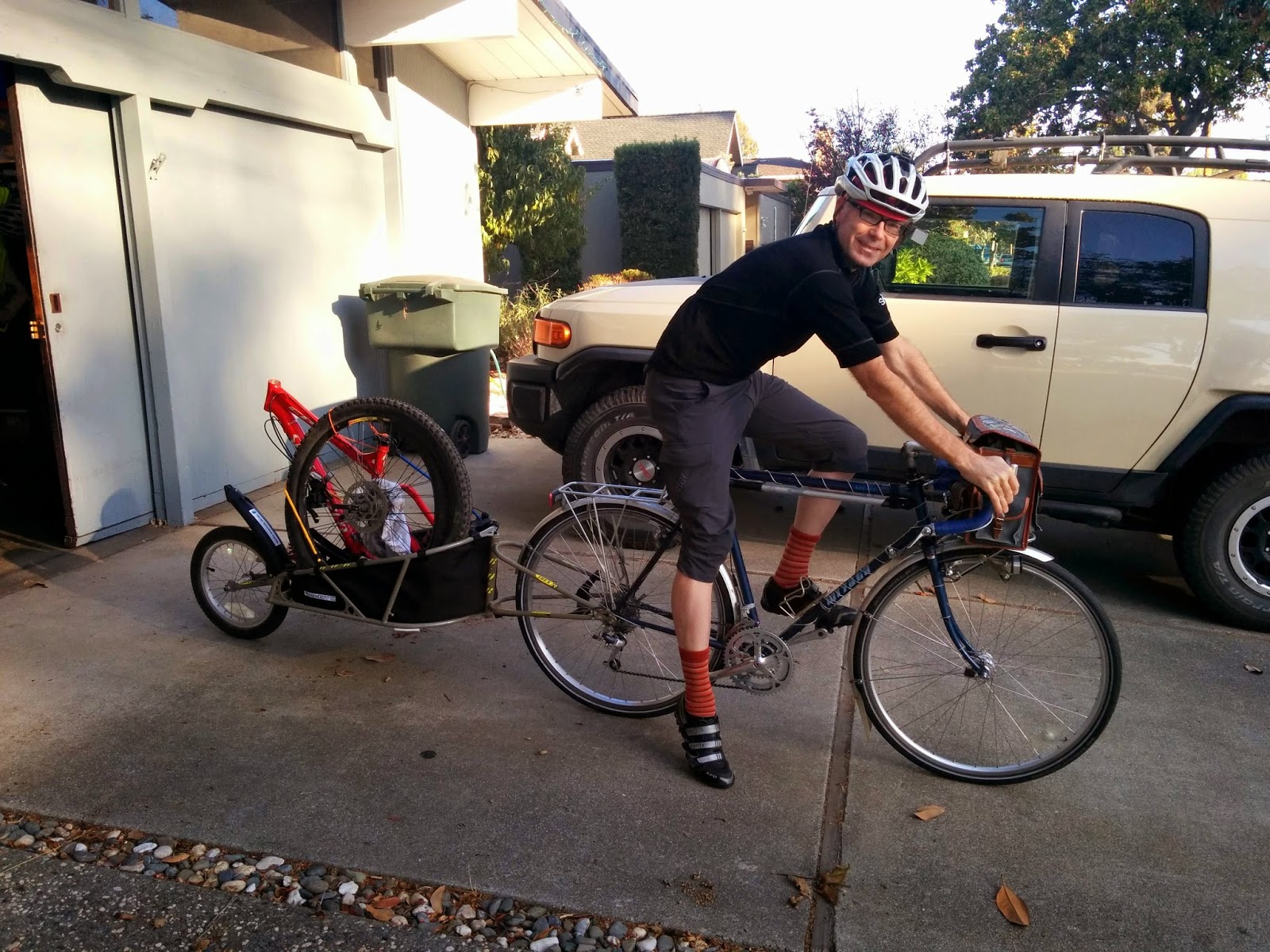 What wasn't immediately apparent was that he was towing another entire bike in the trailer attached to the back of one he was riding!