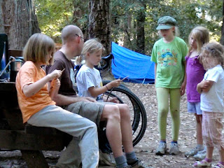Chad instructed Nimue and Cathryn in the fine art of making the perfect marshmallow stick, while some of the younger kids looked on enviously.