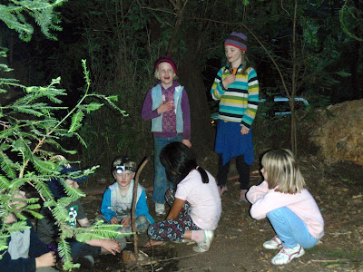 They had a Camp Nitro Pledge of Allegiance, and then tried to troop off into the woods in the dark on a puma hunt. Sarah patiently explained that this wasn't a good idea, while Nim tried to explain that she didn't think it was a good idea either and the only reason she was tailing along was to keep everyone else out of trouble. Patrick the puma hunt leader was unfazed.