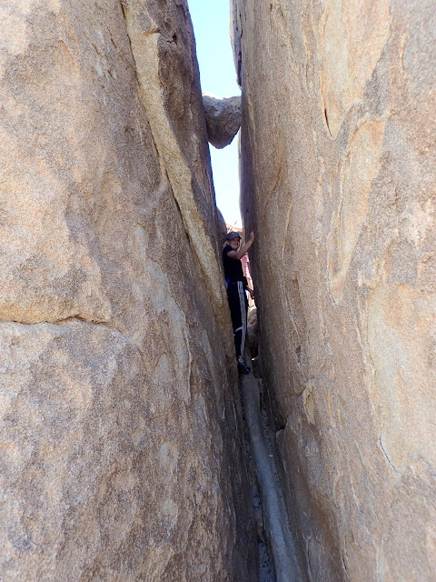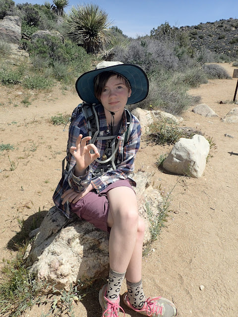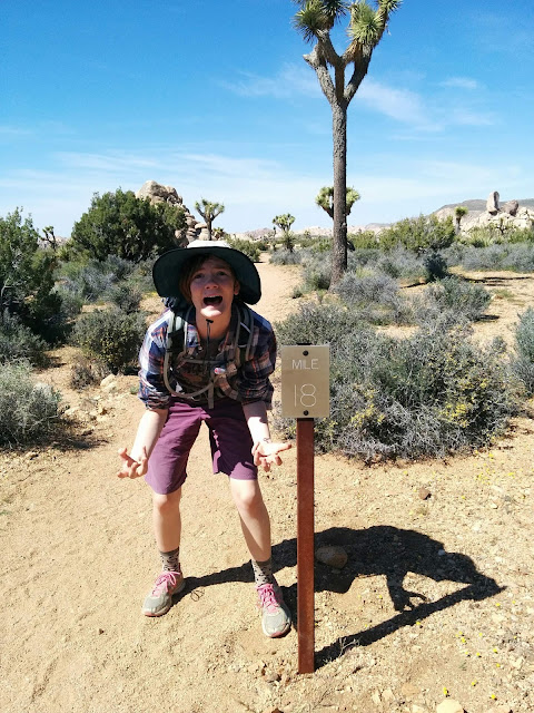 Sarah managed to find the one patch of shade from a Joshua tree.
