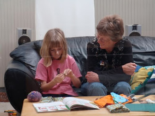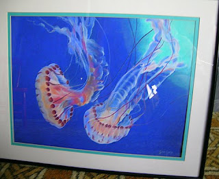 In September my mom came to visit. Lots of good Grandma time for Nim; we enjoyed the visit too. Or at least I hope my mom did, despite the fact that we hurt her back by encouraging her to ride my mountain bike on the way over to school to pick up Nimue. (Ooops) At the very least, we got in a good trip down to the aquarium in Monterey, aka "The Fish Zoo", which my mom hadn't seen in several years. She was particularly inspired by the jellyfish, and I managed to keep Nim occupied looking at the anchovies while my mom exhausted her camera battery gathering photographs on which to base paintings.