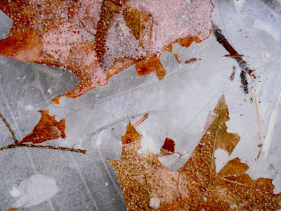 Interesting imprint in the ice after Nimue peeled up a frozen leaf.