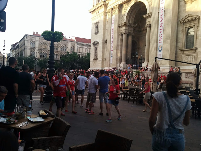 Hungary played in the European soccer tournament one of the evenings we were in Budapest. Given that they had advanced further than anyone expected at that point, and it was a warm summer night in a city that has a lot of night life, there was quite a bit of excitement. We were entertained by the rally that accumulated in the square, full of singing and people in national jerseys.