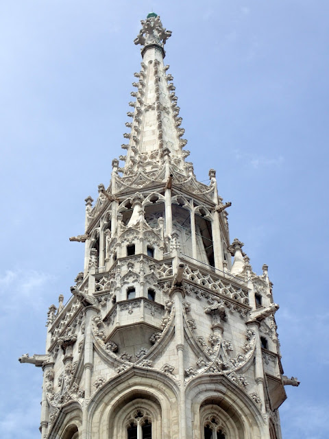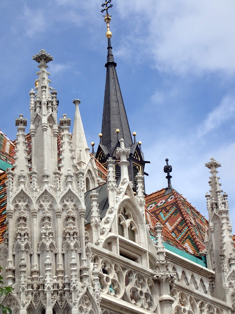 The Matyas Church had all sorts of details to admire. The current building was put up in the 13th century, replacing an older structure (dating back to Istvan again) that was destroyed by the Mongols in 1241. I particularly liked the colorful roof, which was added during a restoration in the 19th century.