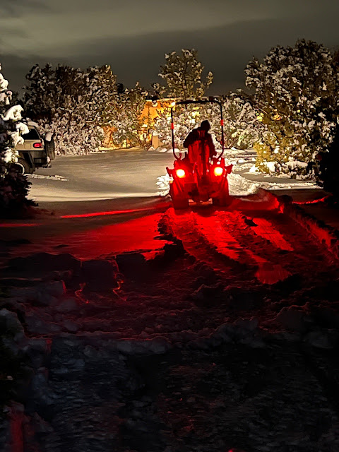 Ma November 30, 2023Chad got to play with the tractor! He was kind enough to clear the neighbor’s driveway too, with the result that he was out well after dark.