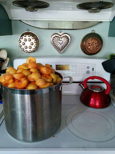 Ma June 11, 2016 #foodI managed to harvest apricots before the squirrels ravaged them too badly this year. They're pretty fragile, so once you pick them, you need to do something with them fast. I figured I'd cook them slightly to soften the skin, puree them, and freeze for later use. There was quite a bit of fruit, so I got out the big stockpot.