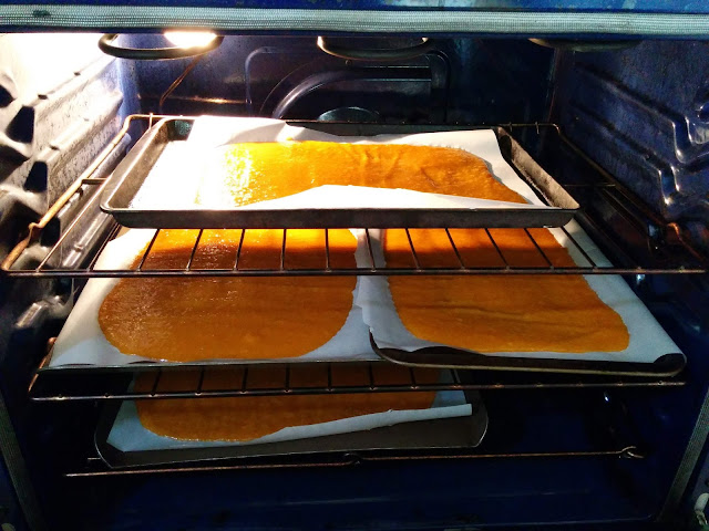 My brilliant plan to just freeze and defer any decisions was thwarted by the fact that I ran out of containers in which to freeze it, so I had to start drying the goo that wouldn't fit. Now the whole house is perfumed with the scent of apricots, but I still have many, many more sheets to dry...