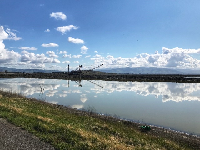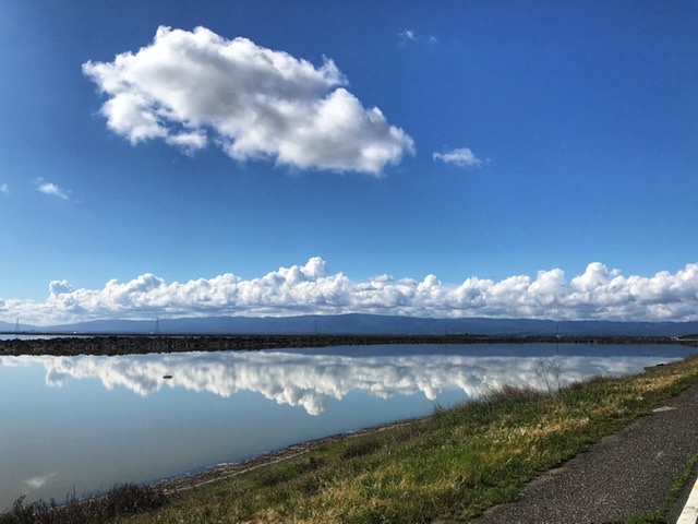 Ma March 26, 2020 #Shelter-in-placeI went on a bike ride this morning, choosing the route based on my rule of “Pick something non-hazardous that I can ride without needing to pee or refill bottles, as long as it isn’t crowded.” The latter piece of that rule generally means “Stay off the normal bike trails”, given the number of people using the bike trails as places to have their kids burn off energy. Not a problem really — there are so many fewer cars on the road that all sorts of routes that would normally be horrible are now quite feasible. I ended up out near the edge of the Bay and enjoyed the clear calm morning air.