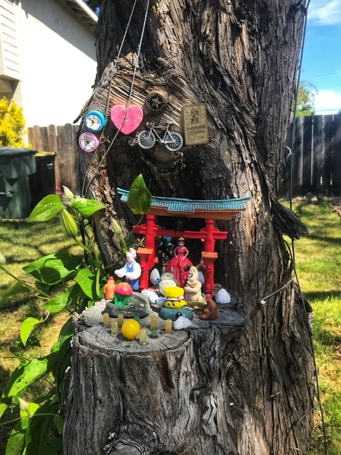 If that isn’t enough to amuse you, ponder this tiny shrine I ran across in someone’s yard on the way home.