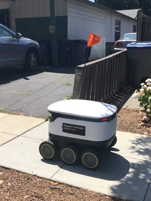 The kid and I were amused to see a cute little food delivery robot trundling around downtown Mountain View when we were out on a bike ride this morning. While it was a pretty jolly sidewalk denizen, the label made me wish I thought it was helping people who are actually hungry. In contrast, we passed a school district food handout earlier in the ride; volunteers there are set up to give food to students who normally qualify for free lunches, but during the pandemic are actually giving out food to anyone who needs it and asks.