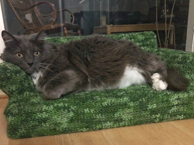 Ma June 05, 2020 #Shelter-in-placeBetcha thought I’d say something about graduation... Nope, saving that for later after I look through all the pictures. For now, enjoy the cat lounging on her newly finished kitty couch. It is, appropriately for the day, Homestead green.