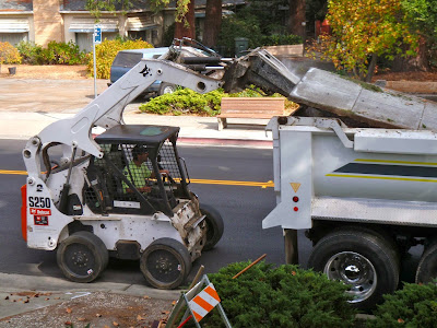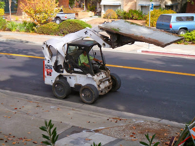 After an hour or so, a cute little Bobcat with a jackhammer attachment on the front showed up.