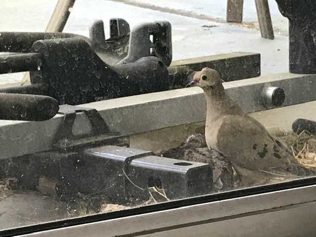Ma June 20, 2020 #yardThere has been a pair of dumb dopey doves hanging around our back yard for the last month or so. They spent seemingly forever looking for a place to nest. On the lip of the awning? Nope. At an inch wide, too small. On top of the grill? Nope. Too exposed. On the light fixture? Nope. Too slopey. On the hangboard? Nope. Denizen of the house chases you off. Watching doves look for a place to nest gives one the impression that they are not the brightest bulbs on the planet.