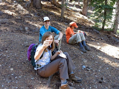 At some point, I realized that no one had grabbed the cheese and salami that we were going to eat at the top of the peak out of the fridge that morning. Doh. Fortunately, we did have other tidbits of food with us, and the celebratory chocolate was still in the pack.